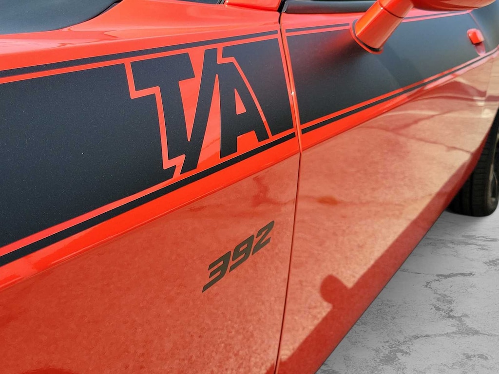 T/A PACKAGE Gloss Black I/P Cluster Trim Rings, Satin Wrap Roof/Decklid, Rear Black Spoiler, MOPAR Cold Air Intake System, Pirelli Brand Tires, Black Grille w/Bezel, Black Satin Painted Hood, Wheels: 20 x 9.5 Low Gloss Black Drag, 392 Fender Decal, Tires: 275/40ZR20 AS Performance, T/A Spoiler Decal, Illuminated Air-Catcher Headlamps, White Face Instrument Cluster, Rhombi 2-Pc Wheel Center Cap, T/A Bodyside Graphic, Functional Hood Scoop, TRANSMISSION: 8-SPEED AUTOMATIC (8HP70) AutoStick Automatic Transmission, Remote Start System, Tip Start, Steering Wheel Mounted Shift Control, Auto Leather Wrapped Shift Knob, DRIVER CONVENIENCE GROUP Locking Lug Nuts, Exterior Mirrors w/Heating Element, Blind Spot & Cross Path Detection, Body Color Exterior Mirrors, Power Multi-Function Foldaway Mirrors, High Intensity Discharge Headlamps, POWER SUNROOF, ENGINE: 6.4L V8 SRT HEMI MDS. Dodge R/T Scat Pack with Go Mango exterior and Black interior features a 8 Cylinder Engine with 485 HP at 6100 RPM*.
