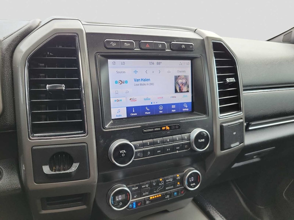 EQUIPMENT GROUP 202A Heated/Ventilated Front Seats, 110V/150W AC Power Outlet, 2nd Row 40/20/40 Tip & Slide Seat, Power-folding, 3rd Row Vinyl Seat, Chrome Platform Running Boards, Remote Start, Power Tilt/Telescopic Steering Wheel, memory, Advanced Security Pack, SecuriLock Passive Anti-Theft System (PATS) and inclination/intrusion sensors, Wireless Charging Pad, Located in media hub, 2 Smart Charging USB Ports In 3rd Row, Hands-Free Foot-Activated Liftgate, power liftgate functionality, Heated Steering Wheel, Power-Folding Heated Body-Color Power Mirrors, turn signal indicators, driver/passenger memory, auto-fold and security approach lamps, 3rd Row Power-Folding Head Restraints, Intelligent Access, Santa Cruz Vinyl-Wrapped Center Console Side Rails, Uplevel Instrument Panel Cluster, 8, PANORAMIC VISTA ROOF power open/close w/power shade, WHEELS: 20 LUSTER NICKEL-PAINTED ALUMINUM Tires: P275/55R20 AT BSW, VOICE-ACTIVATED TOUCH-SCREEN NAVIGATION SYSTEM pinch-to-zoom capability, SiriusXM Traffic and Travel Link, SirusXM Traffic and Travel Link includes a, 2ND ROW POWER-FOLDING 40/20/40 ACTIVEX BENCH SEAT tip-and-slide feature, TRANSMISSION: 10-SPEED AUTOMATIC W/SELECTSHIFT (STD), ENGINE: 3.5L ECOBOOST V6 auto start-stop technology (STD). Ford XLT with Magnetic exterior and Ebony interior features a V6 Cylinder Engine with 375 HP at 5000 RPM*.