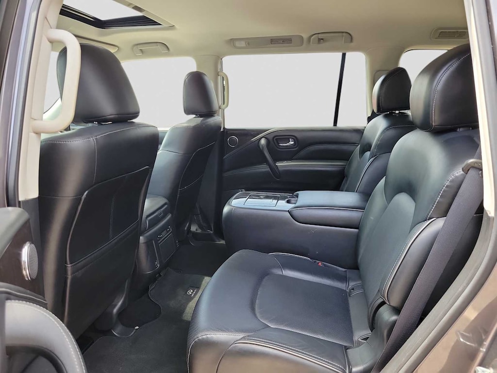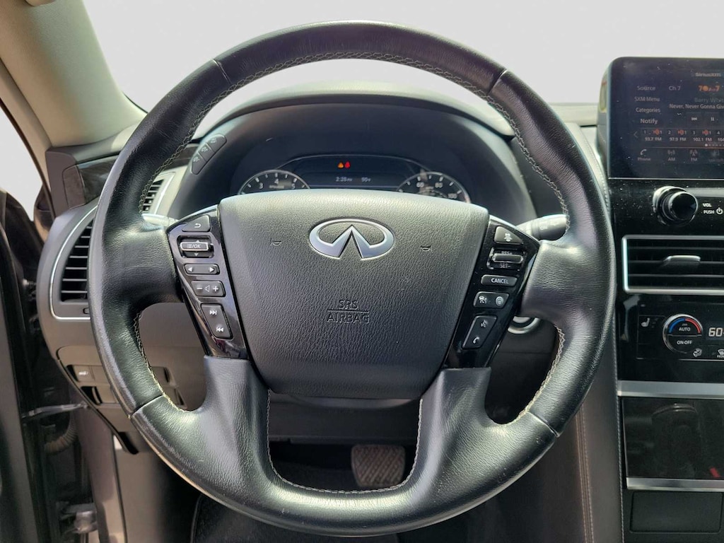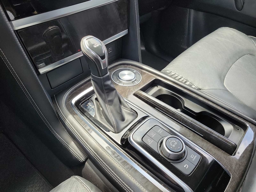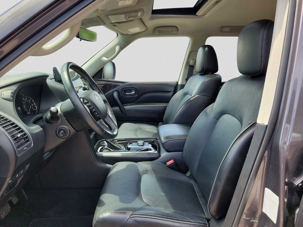 Leather Seats, Third Row Seat, Navigation, Sunroof, Quad Bucket Seats, Power Liftgate, Rear Air, Heated Driver Seat, Back-Up Camera, Running Boards, Premium Sound System, Satellite Radio, iPod/MP3 Input, Onboard Communications System, Trailer Hitch. Rear Spoiler, MP3 Player, Keyless Entry, Privacy Glass, Remote Trunk Release. INFINITI LUXE with Anthracite Gray exterior and Graphite interior features a 8 Cylinder Engine with 400 HP at 5800 RPM*.