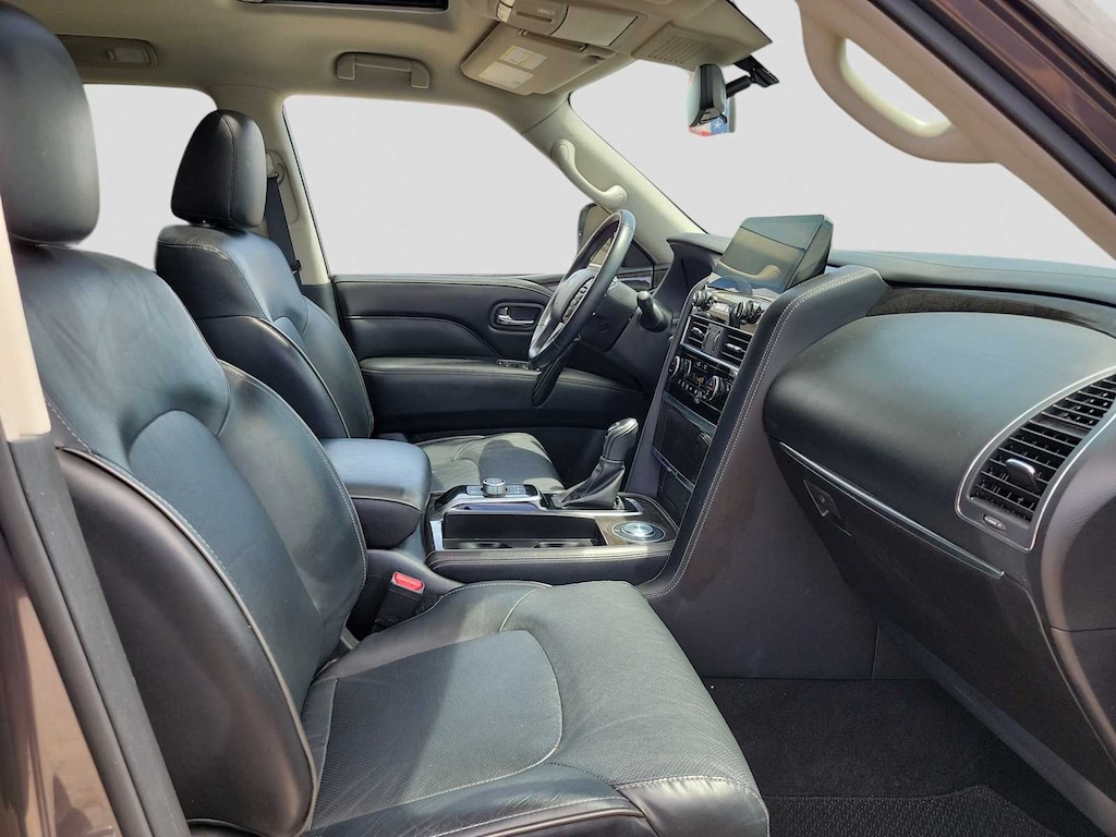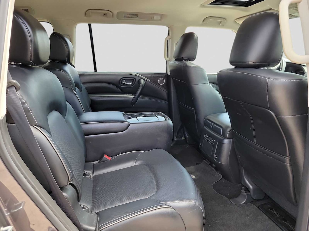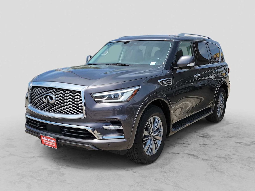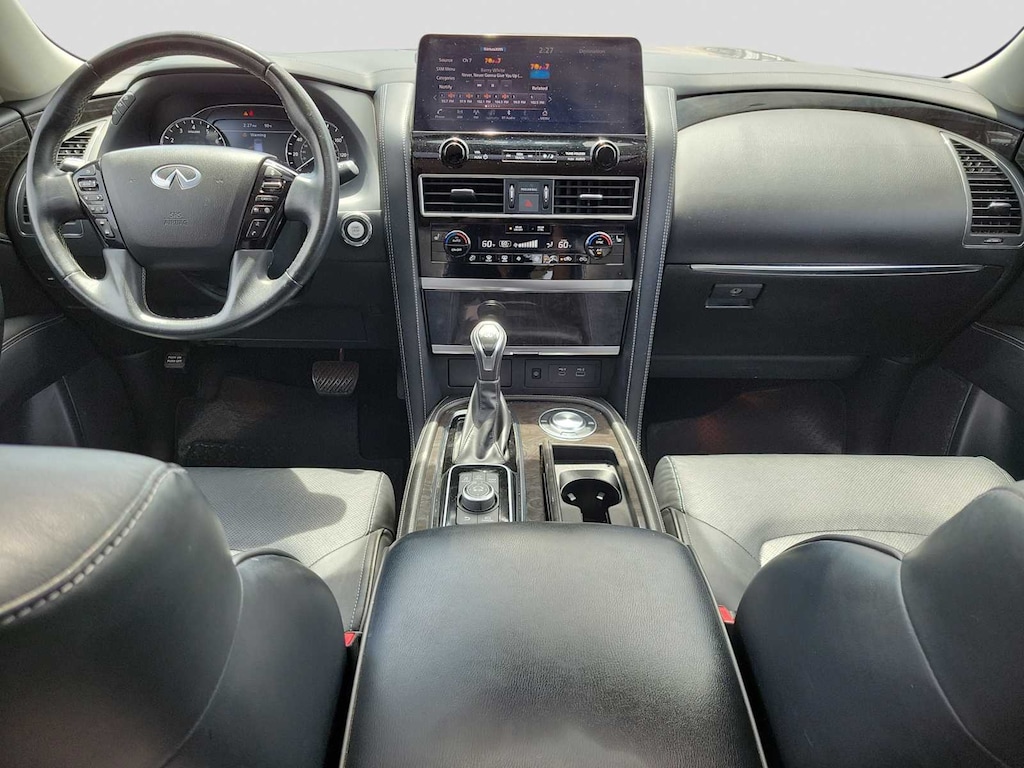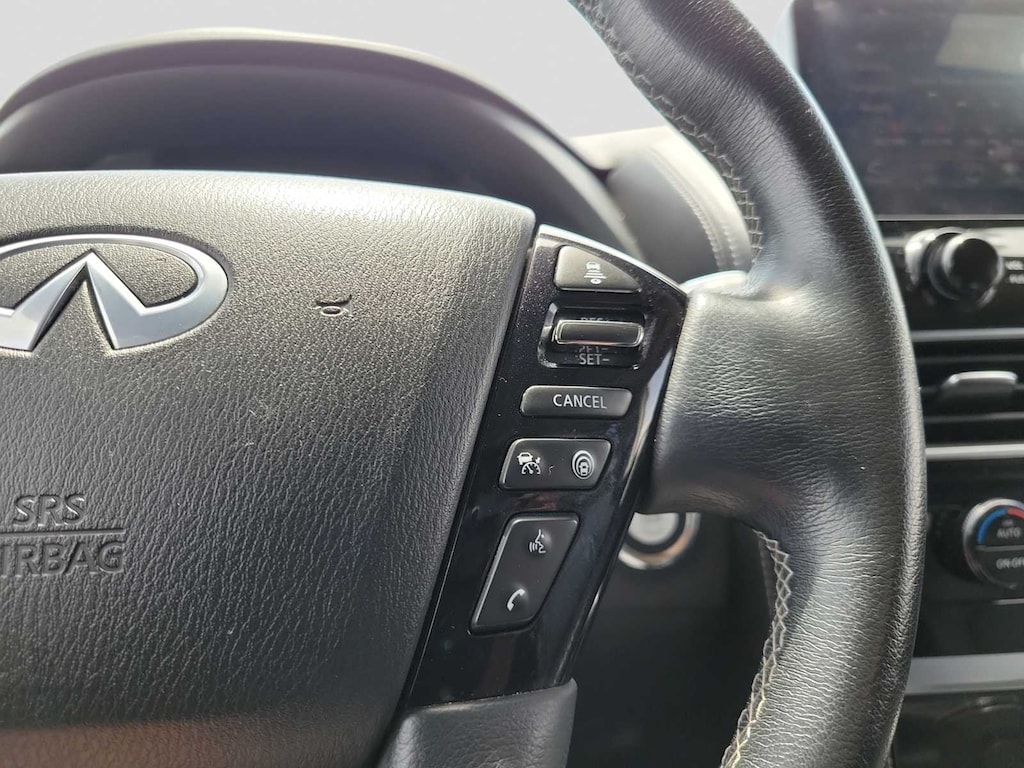 Leather Seats, Third Row Seat, Navigation, Sunroof, Quad Bucket Seats, Power Liftgate, Rear Air, Heated Driver Seat, Back-Up Camera, Running Boards, Premium Sound System, Satellite Radio, iPod/MP3 Input, Onboard Communications System, Trailer Hitch. Rear Spoiler, MP3 Player, Keyless Entry, Privacy Glass, Remote Trunk Release. INFINITI LUXE with Anthracite Gray exterior and Graphite interior features a 8 Cylinder Engine with 400 HP at 5800 RPM*.