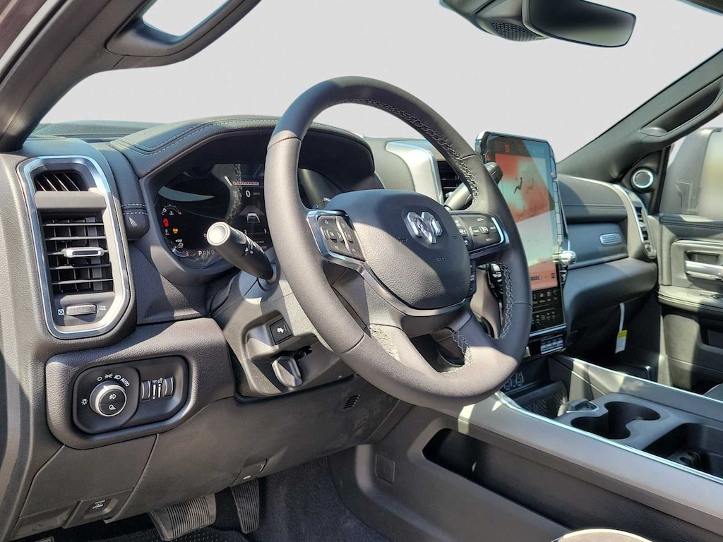 ENGINE: 6.7L I6 CUMMINS HO TURBO DIESEL Selective Catalytic Reduction (Urea), Dual 730 Amp Maintenance Free Batteries, Cummins Turbo Diesel Badge, Heavy Duty Engine Cooling, Diesel Exhaust Brake, Supplemental Heater, 3.42 Axle Ratio, Front Bumper Sight Shields, Capless Fuel Fill w/o Discriminator, GVWR: 10,190 lbs, LARAMIE LEVEL 2 PLUS EQUIPMENT GROUP Power Adjustable Pedals w/Memory, Power Deployable Running Boards, Auto Power-Folding Mirrors, Anti-Spin Differential Rear Axle, Drowsy Driver Detection, MOPAR Deployable Bed Step, Active Lane Management System, Remote Tailgate Release, 17 Speaker harman/kardon® Premium Sound, 2nd Row In Floor Storage Bins, CTR Stop Lamp w/Cargo View Camera, Rain Sensitive Windshield Wipers, LED Bed Lighting, Traffic Sign Recognition, GPS Navigation, Adaptive Steering System, Auto Dim Exterior Mirror, SiriusXM w/360L, Heated Second Row Seats, Foam Bottle Insert (Door Trim Panel), Off-Road Info Pages, Trailer Tow Pages, 14.4 Touchscreen Display, Power Heated Fold Telescopic Mirrors w/Memory, Radio: Uconnect 5 Nav w/14.4 Display, MOPAR Spray In Bedliner, Auto High Beam, AUTO LEVEL REAR AIR SUSPENSION, TRANSMISSION: 8-SPEED TORQUEFLITE HD AUTOMATIC, BLACK, LEATHER TRIMMED BUCKET SEATS Bucket Seats, Dual Wireless Charging Pad, #1 Seat Foam Cushion, Full Length Upgraded Floor Console, SPORT APPEARANCE PACKAGE Tires: LT285/60R20E OWL On/Off Road, Center Hub, Body Color Grille Surround, Sport Performance Hood, Sport Decal, Wheels: 20 x 8.0 Diamond Cut Face Aluminum. Ram Laramie with Granite Crystal Metallic Clearcoat exterior and Black interior features a Straight 6 Cylinder Engine with 430 HP at 2800 RPM*.