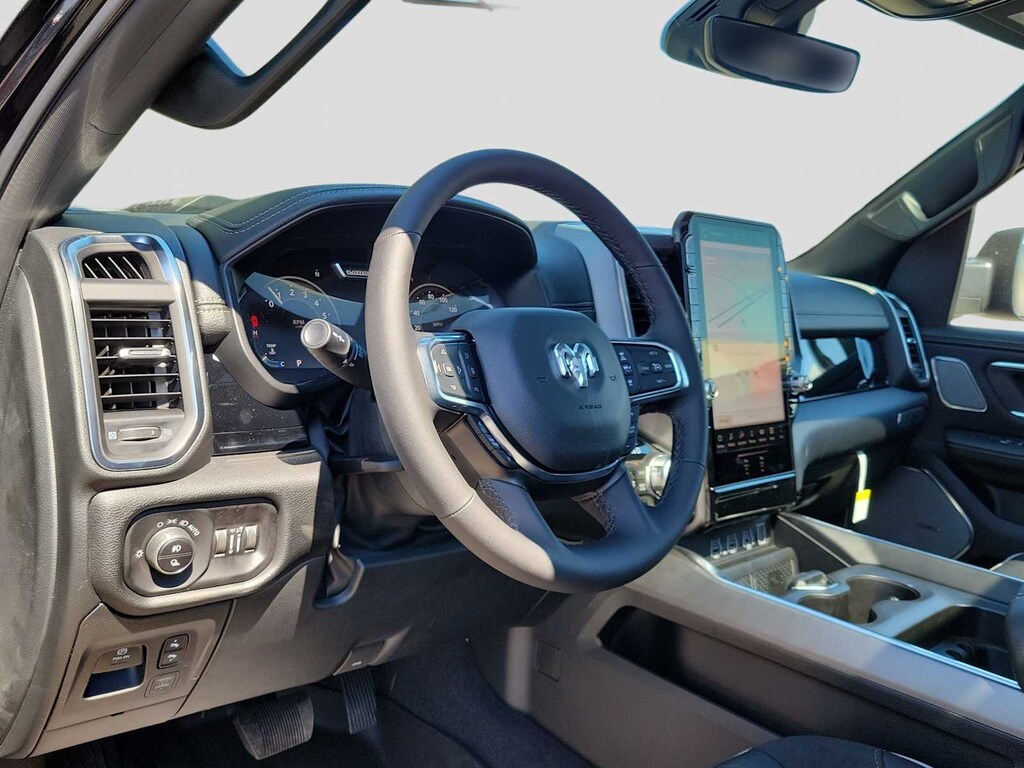 NIGHT EDITION Black Headlamp Bezels, Wheels: 22 x 9 Forged Aluminum, Tires: 285/45R22XL BSW All Season, Pirelli Brand Tires, Proximity Approach/Departure Lamps, Anti-Spin Differential Rear Axle, Accent Color Door Handles, Black Interior Accents, Body Color Front Bumper, Grille Surround 3 Black Texture 2 Black, Body Color Rear Bumper w/Step Pads, RAM Grille Badge - Black, Black Painted Exterior Mirrors Caps, Exterior Mirrors Approach Lamps, Accent Color Premium Power Mirrors, Sport Performance Hood, Black Exterior Truck Badging, Accent Color Tailgate Handle, Dual Exhaust w/Black Tips, Black Tail Lamp Bezels, LARAMIE LEVEL 2 EQUIPMENT GROUP Rain Sensitive Windshield Wipers, Front Passenger Interactive Display, Secondary Active Grille Shutters, Smartphone As A Key Capable, 14.4 Touchscreen Display, Dual Wireless Charging Pad, Radio: Uconnect 5 Nav w/14.4 Display, harman/kardon® 19 Speaker Premium Sound, Cluster 12 TFT Color Display, Power Tailgate, DUAL-PANE PANORAMIC SUNROOF LED Dome/Reading Lamp, Dome Dual LED Reading Lamp, POWER DEPLOYABLE RUNNING BOARDS, MOPAR FRONT & REAR RUBBER FLOOR MATS, TRANSMISSION: 8-SPEED AUTOMATIC (8HP75) (STD), ENGINE: 3.0L I6 HURRICANE SO TWIN TURBO ESS (STD). Ram Laramie with Diamond Black Crystal Pearlcoat exterior and Black interior features a Straight 6 Cylinder Engine with 420 HP at 5200 RPM*.