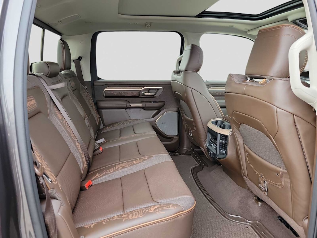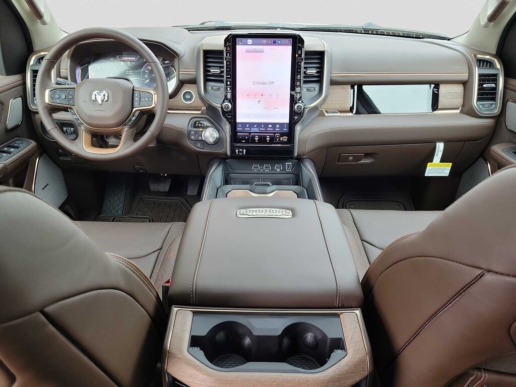 LIMITED LEVEL A EQUIPMENT GROUP Surround View Camera System, LED CHMSL Lamp, Tri-Fold Tonneau Cover, Traffic Sign Recognition, Hands-Free Active Driving Assist System, Head Up Display, Evasive Steer Assist, Drowsy Driver Detection, Intersection Collision Assist System, Smartphone As A Key Capable, 14.4 Touchscreen Display, Radio: Uconnect 5 Nav w/14.4 Display, 240 Amp Alternator, 12-Way/1-Way Trailer Connector, WHEELS: 22 X 9 PREMIUM PAINT/POLISHED Tires: 285/45R22XL BSW All Season, Pirelli Brand Tires, DUAL-PANE PANORAMIC SUNROOF LED Dome/Reading Lamp, Dome Dual LED Reading Lamp, QUICK ORDER PACKAGE 22K LONGHORN Engine: 3.0L I6 Hurricane HO Twin Turbo ESS, Transmission: 8-Speed Automatic (8HP75), Grille Surround 4 Chrome Texture 5 Chrome, Warm Chrome Key Fob, Longhorn Instrument Cluster Theme 3, Premium Door Trim Panel, Longhorn Badge, TRANSMISSION: 8-SPEED AUTOMATIC (8HP75) (STD), ENGINE: 3.0L I6 HURRICANE HO TWIN TURBO ESS (STD). Ram Longhorn with Granite Crystal Metallic Clearcoat exterior and Bison Brown interior features a Straight 6 Cylinder Engine.