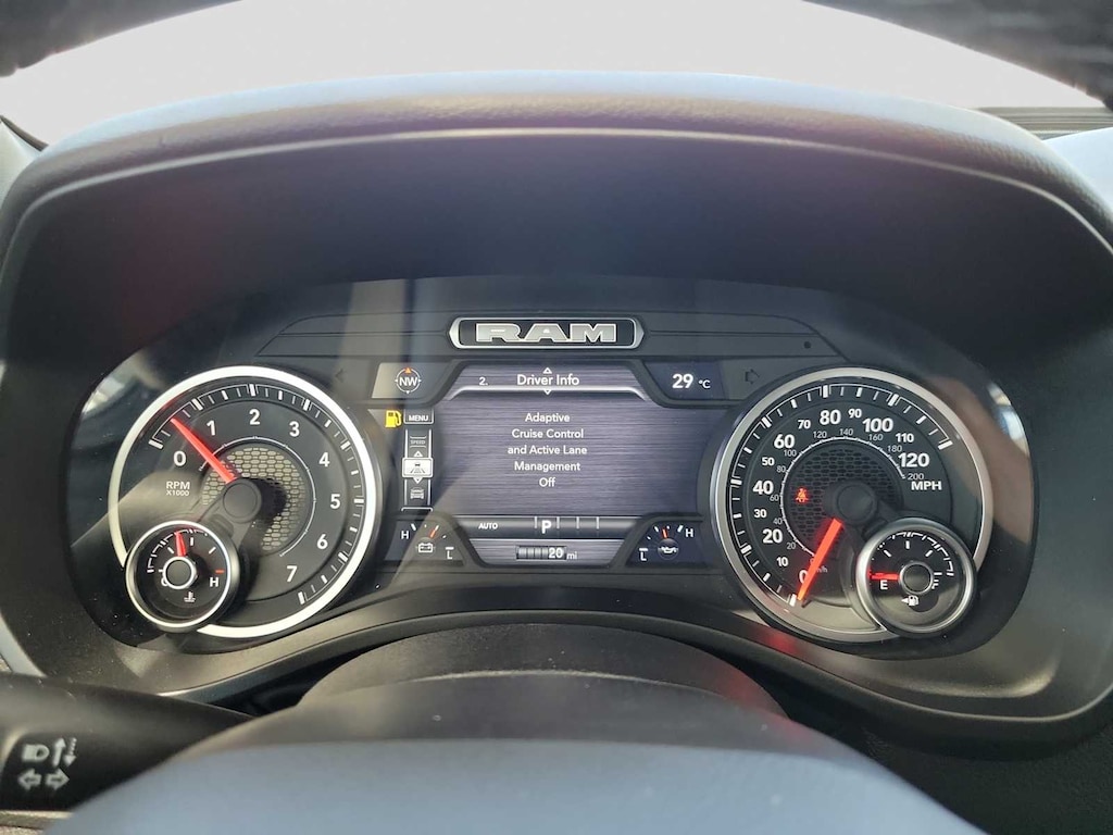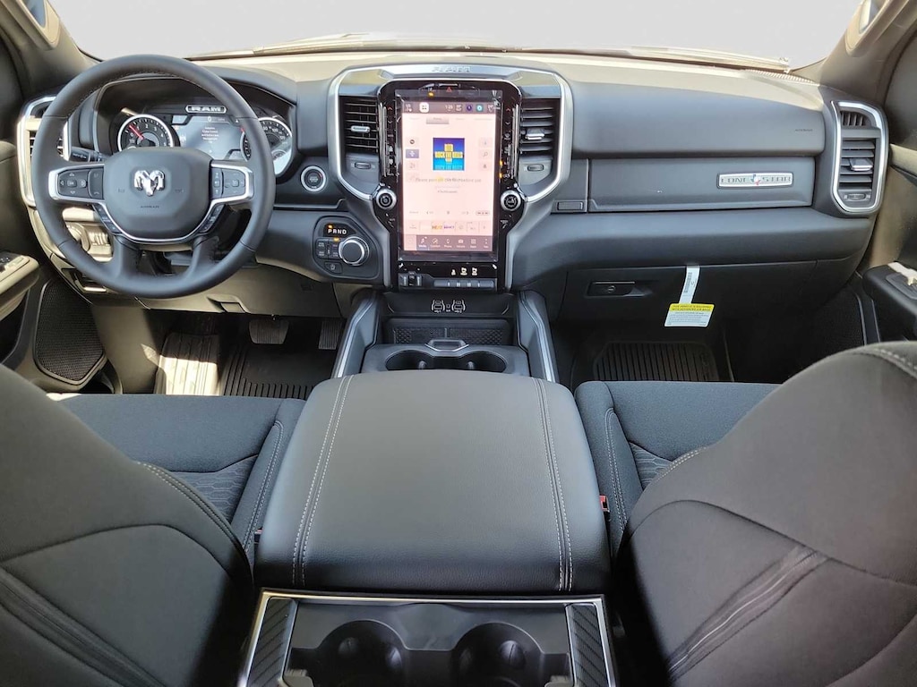 BIG HORN LEVEL 2 EQUIPMENT GROUP SiriusXM Radio Service, Power Adjustable Pedals, Leather Wrapped Steering Wheel, 12 Touchscreen Display, Glove Box Lamp, Auto Power-Folding Mirrors, 115V Auxiliary Rear Power Outlet, Media Hub w/2 Charge Only USBs, Heated Front Seats, Security Alarm, Black Premium Power Mirrors, Premium Overhead Console, 9 Amplified Speakers w/Subwoofer, Disassociated Touchscreen Display, Body Color Fender Flares, Remote Tailgate Release, 115V Auxiliary Power Outlet, LED Dome Lamp w/On/Off Switch, Universal Garage Door Opener, 2nd Row In Floor Storage Bins, Sun Visors w/Illuminated Vanity Mirrors, LED Footwell Lighting, Rear Window Defroster, Rear View Auto Dim Mirror, Rear Power Sliding Window, GPS Navigation, Overhead LED Lamps, Wheels: 20 x 9 Aluminum Chrome Clad, ENGINE: 5.7L V8 HEMI MDS VVT ETORQUE Active Noise Control System, Heavy Duty Engine Cooling, Passive Tuned Mass Damper, GVWR: 7,100 lbs, Dual Rear Exhaust w/Bright Tips, G/T Exhaust, 18 Aluminum Spare Wheel, NIGHT EDITION Tires: 275/55R20 OWL All Season, Bridgestone Brand Tires, Accent Color Premium Power Mirrors, Exterior Mirrors w/Supplemental Signals, Black Headlamp Bezels, Exterior Mirrors Courtesy Lamps, Grille Black Surround Black Mesh, Auto Power-Folding Mirrors, Wheels: 20 x 9.0 Aluminum Painted Clad, Auto Dim Exterior Driver Mirror, Black Exterior Truck Badging, Anti-Spin Differential Rear Axle, Accent Color Door Handles, Accent Color Tailgate Handle, Black Interior Accents, Dual Exhaust w/Black Tips, Body Color Front Bumper, Body Color Rear Bumper w/Step Pads, Black Tail Lamp Bezels, RAM Grille Badge - Black, Black Painted Exterior Mirrors Caps, MOPAR FRONT & REAR RUBBER FLOOR MATS, TRANSMISSION: 8-SPEED AUTOMATIC (8HP75). Ram Lone Star with Serrano Green Metallic exterior and Black interior features a 8 Cylinder Engine with 395 HP at 5600 RPM*.
