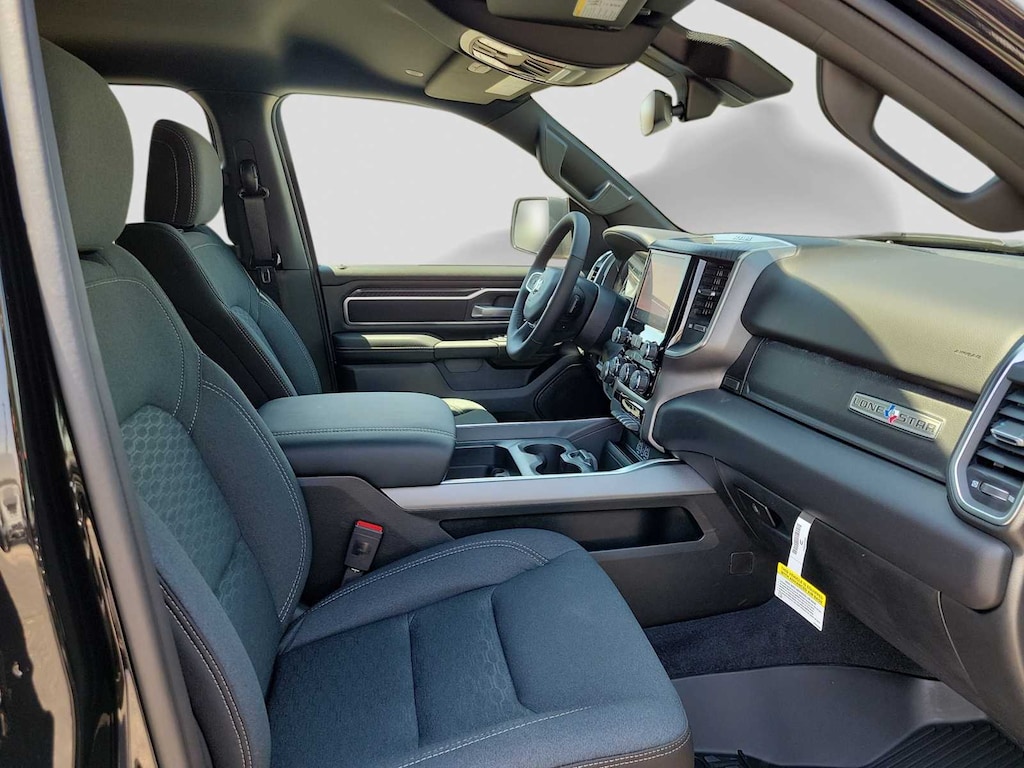 NIGHT EDITION Tires: 275/55R20 OWL All Season, Bridgestone Brand Tires, Accent Color Premium Power Mirrors, Exterior Mirrors w/Supplemental Signals, Black Headlamp Bezels, Exterior Mirrors Courtesy Lamps, Grille Black Surround Black Mesh, Auto Power-Folding Mirrors, Wheels: 20 x 9.0 Aluminum Painted Clad, Auto Dim Exterior Driver Mirror, Black Exterior Truck Badging, Anti-Spin Differential Rear Axle, Accent Color Door Handles, Accent Color Tailgate Handle, Black Interior Accents, Dual Exhaust w/Black Tips, Body Color Front Bumper, Body Color Rear Bumper w/Step Pads, Black Tail Lamp Bezels, RAM Grille Badge - Black, Black Painted Exterior Mirrors Caps, Rear Wheelhouse Liners, BIG HORN LEVEL 1 EQUIPMENT GROUP SiriusXM Radio Service, Rear Window Defroster, Rear View Auto Dim Mirror, Power Adjustable Pedals, Leather Wrapped Steering Wheel, Rear Power Sliding Window, Rear Dome w/On/Off Switch Lamp, Glove Box Lamp, Auto Power-Folding Mirrors, Auto Dim Exterior Driver Mirror, Heated Front Seats, Heated Steering Wheel, Black Premium Power Mirrors, SiriusXM Satellite Radio, 400W Inverter, Exterior Mirrors w/Supplemental Signals, Steering Wheel Mounted Audio Controls, Exterior Mirrors Courtesy Lamps, Body Color Fender Flares, 115V Auxiliary Power Outlet, Universal Garage Door Opener, 2nd Row In Floor Storage Bins, Sun Visors w/Illuminated Vanity Mirrors, MOPAR FRONT & REAR RUBBER FLOOR MATS, TRANSMISSION: 8-SPEED AUTOMATIC (850RE) (STD), ENGINE: 3.6L V6 24V VVT ETORQUE UPG I (STD). Ram Lone Star with Diamond Black Crystal Pearlcoat exterior and Black interior features a V6 Cylinder Engine with 305 HP at 6400 RPM*.