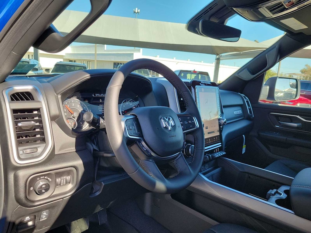 ENGINE: 5.7L V8 HEMI MDS VVT ETORQUE Active Noise Control System, Heavy Duty Engine Cooling, Passive Tuned Mass Damper, GVWR: 7,100 lbs, Dual Rear Exhaust w/Bright Tips, G/T Exhaust, 18 Aluminum Spare Wheel, BIG HORN LEVEL 2 EQUIPMENT GROUP SiriusXM Radio Service, Power Adjustable Pedals, Leather Wrapped Steering Wheel, 12 Touchscreen Display, Glove Box Lamp, Auto Power-Folding Mirrors, 115V Auxiliary Rear Power Outlet, Media Hub w/2 Charge Only USBs, Heated Front Seats, Security Alarm, Black Premium Power Mirrors, Premium Overhead Console, 9 Amplified Speakers w/Subwoofer, Disassociated Touchscreen Display, Body Color Fender Flares, Remote Tailgate Release, 115V Auxiliary Power Outlet, LED Dome Lamp w/On/Off Switch, Universal Garage Door Opener, 2nd Row In Floor Storage Bins, Sun Visors w/Illuminated Vanity Mirrors, LED Footwell Lighting, Rear Window Defroster, Rear View Auto Dim Mirror, Rear Power Sliding Window, GPS Navigation, Overhead LED Lamps, Wheels: 20 x 9 Aluminum Chrome Clad, NIGHT EDITION Tires: 275/55R20 OWL All Season, Bridgestone Brand Tires, Accent Color Premium Power Mirrors, Exterior Mirrors w/Supplemental Signals, Black Headlamp Bezels, Exterior Mirrors Courtesy Lamps, Grille Black Surround Black Mesh, Auto Power-Folding Mirrors, Wheels: 20 x 9.0 Aluminum Painted Clad, Auto Dim Exterior Driver Mirror, Black Exterior Truck Badging, Anti-Spin Differential Rear Axle, Accent Color Door Handles, Accent Color Tailgate Handle, Black Interior Accents, Dual Exhaust w/Black Tips, Body Color Front Bumper, Body Color Rear Bumper w/Step Pads, Black Tail Lamp Bezels, RAM Grille Badge - Black, Black Painted Exterior Mirrors Caps, MOPAR FRONT & REAR RUBBER FLOOR MATS, TRANSMISSION: 8-SPEED AUTOMATIC (8HP75). Ram Lone Star with Hydro Blue Pearlcoat exterior and Black interior features a 8 Cylinder Engine with 395 HP at 5600 RPM*.