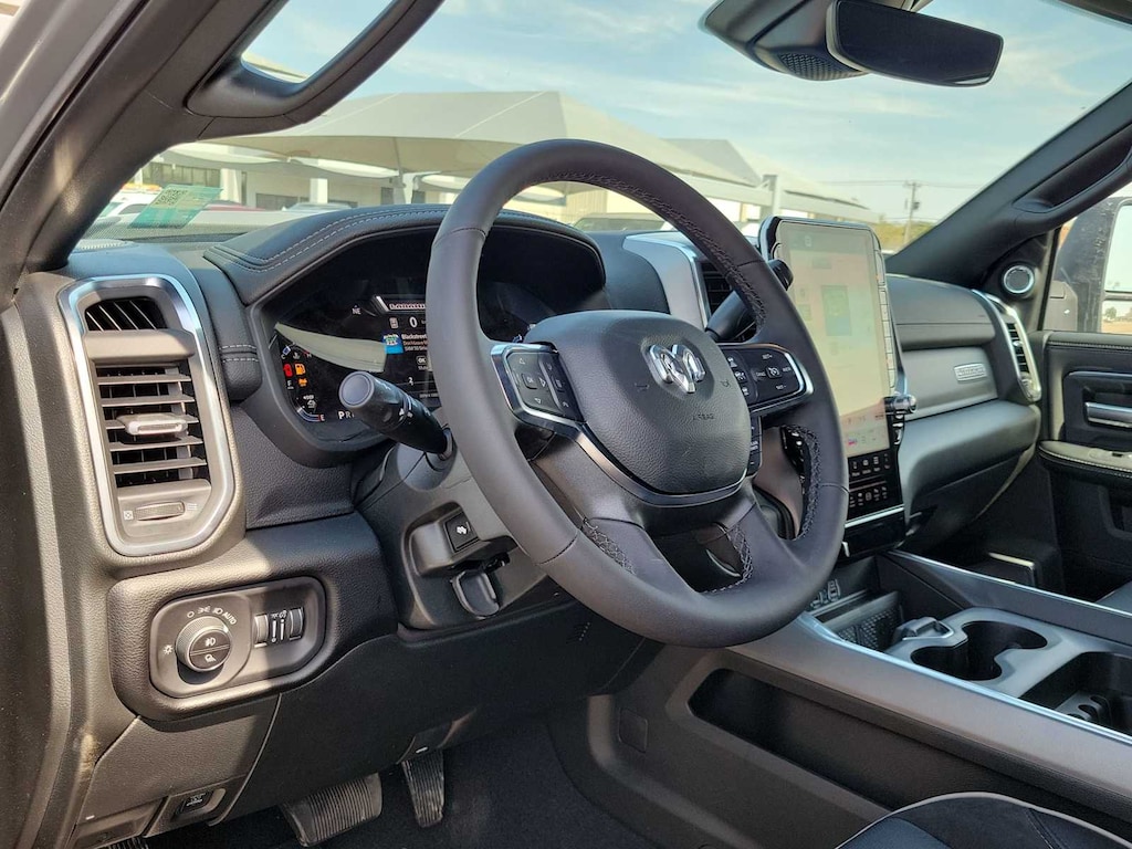 NIGHT EDITION Tires: LT285/60R20E OWL On/Off Road, Black Exterior Truck Badging, Wheels: 20 x 8 Black Painted Aluminum, Gloss Black Grille Billets/Accents, Body Color Grille Surround, Sport Performance Hood, LARAMIE LEVEL 1 PLUS EQUIPMENT GROUP Center Stop Lamp w/Cargo View Camera, Rain Sensitive Windshield Wipers, Power Adjustable Pedals w/Memory, LED Bed Lighting, Traffic Sign Recognition, Adaptive Steering System, Auto Dim Exterior Mirror, Anti-Spin Differential Rear Axle, Heated Second Row Seats, Drowsy Driver Detection, MOPAR Deployable Bed Step, Foam Bottle Insert (Door Trim Panel), Active Lane Management System, Power Heated Fold Telescope Mirrors w/Memory, MOPAR Spray In Bedliner, Remote Tailgate Release, Auto High Beam Headlamp Control, Exterior Mirrors w/Memory, Auto Dim Exterior Passenger Mirror, Auto Adjust In Reverse Exterior Mirrors, MOPAR FRONT & REAR RUBBER FLOOR MATS, TRANSMISSION: 8-SPEED TORQUEFLITE HD AUTOMATIC (STD), ENGINE: 6.7L I6 CUMMINS HO TURBO DIESEL (STD), BLACK, LEATHER TRIMMED BUCKET SEATS Bucket Seats, Dual Wireless Charging Pad, Ventilated Front Seats, Radio/Driver Seat/Mirrors/Pedals Memory, Full Length Upgraded Floor Console. Ram Laramie with Diamond Black Crystal Pearlcoat exterior and Black interior features a Straight 6 Cylinder Engine with 430 HP at 2800 RPM*.
