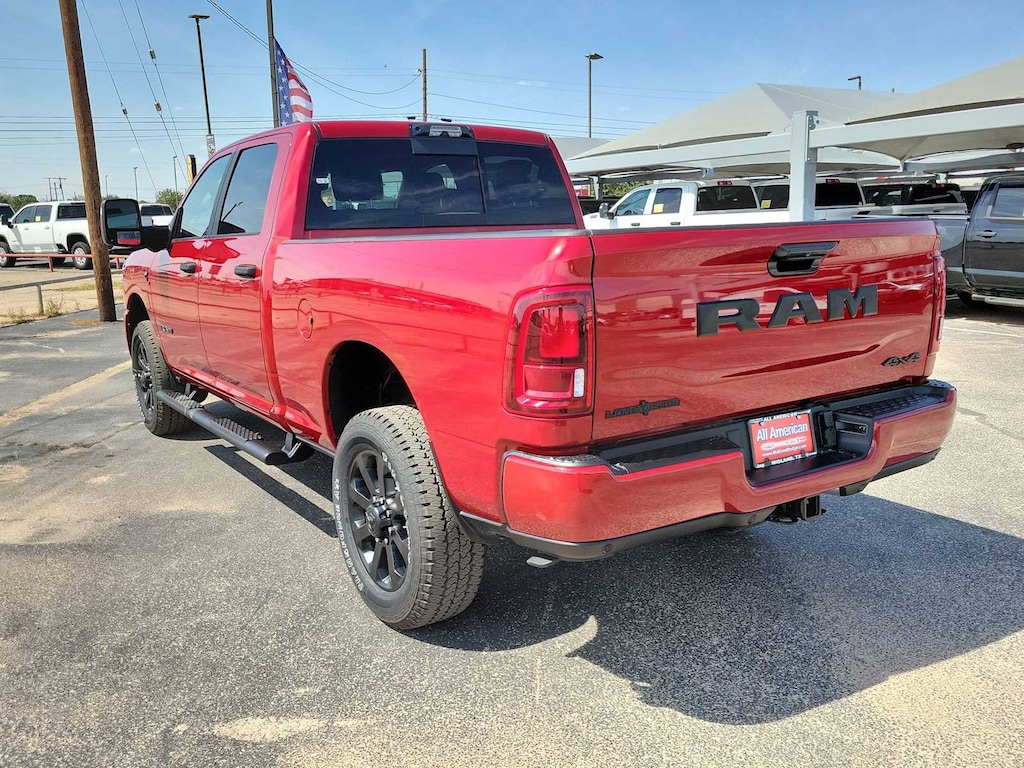 ENGINE: 6.7L I6 CUMMINS HO TURBO DIESEL Selective Catalytic Reduction (Urea), Dual 730 Amp Maintenance Free Batteries, Cummins Turbo Diesel Badge, Heavy Duty Engine Cooling, Diesel Exhaust Brake, Supplemental Heater, 3.42 Axle Ratio, Front Bumper Sight Shields, Capless Fuel Fill w/o Discriminator, GVWR: 11,040 lbs, BIG HORN LEVEL 2 PLUS EQUIPMENT GROUP Surround View Camera System, Blind Spot & Cross Path Detection, LED Tail Lamps, Red Tail Lamp Bezels, Power Adjustable Pedals, Emergency Vehicle Alert System (EVAS), Lone Star IP Badge, 12 Touchscreen Display, Glove Box Lamp, Auto Power-Folding Mirrors, Footwell Courtesy Lamp, 115V Auxiliary Rear Power Outlet, Media Hub w/2 Charge Only USBs, Anti-Spin Differential Rear Axle, Drowsy Driver Detection, Heated Front Seats, MOPAR Deployable Bed Step, Exterior 115V AC Outlet, Alexa Built-In, Active Lane Management System, Forward & Reverse Utility Lights, Locking Lower Glove Box, Remote Start System, 9 Alpine Speakers w/Subwoofer, Disassociated Touchscreen Display, Dual Wireless Charging Pad, Trailer Tire Pressure Monitoring System, Dual Glove Boxes, 115V, NIGHT EDITION Gloss Black Nostrils/Mic Black Grille, Tires: LT285/60R20E OWL On/Off Road, Black Exterior Truck Badging, Wheels: 20 x 8.0 Black Painted Aluminum, Body Color Grille-Surround, Black Interior Accents, Black Wheel Center Hub, Painted Front Bumper, Painted Rear Bumper, MOPAR FRONT & REAR RUBBER FLOOR MATS, TRANSMISSION: 8-SPEED TORQUEFLITE HD AUTOMATIC, BLACK, PREMIUM CLOTH BUCKET SEATS Bucket Seats, Power Adjust 8-Way Driver Seat, Folding Flat Load Floor Storage, Rear 60/40 Folding Seat, Front Seat Back Map Pockets, Power 2-Way Driver Lumbar Adjust, Full Length Upgraded Floor Console. Ram Lone Star with Molten Red Pearlcoat exterior and Black interior features a Straight 6 Cylinder Engine with 430 HP at 2800 RPM*.
