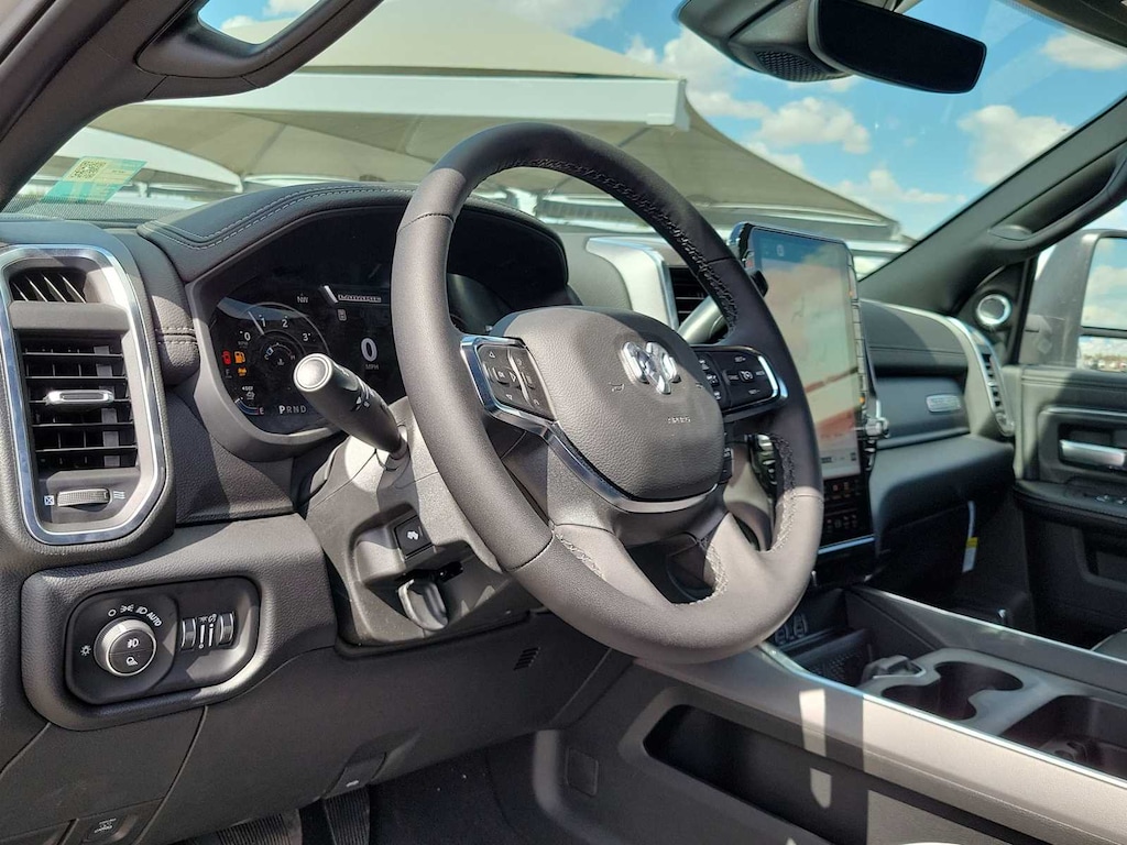 LARAMIE LEVEL 2 PLUS EQUIPMENT GROUP Power Adjustable Pedals w/Memory, Power Deployable Running Boards, Anti-Spin Differential Rear Axle, Drowsy Driver Detection, MOPAR Deployable Bed Step, Active Lane Management System, Remote Tailgate Release, 17 Speaker harman/kardon® Premium Sound, Center Stop Lamp w/Cargo View Camera, Rain Sensitive Windshield Wipers, LED Bed Lighting, Traffic Sign Recognition, Adaptive Steering System, Auto Dim Exterior Mirror, Foam Bottle Insert (Door Trim Panel), 14.4 Touchscreen Display, Power Heated Fold Telescope Mirrors w/Memory, Radio: Uconnect 5 Nav w/14.4 Display, MOPAR Spray In Bedliner, Auto High Beam Headlamp Control, Exterior Mirrors w/Memory, Auto Dim Exterior Passenger Mirror, Auto Adjust In Reverse Exterior Mirrors, NIGHT EDITION Tires: LT285/60R20E OWL On/Off Road, Black Exterior Truck Badging, Wheels: 20 x 8 Black Painted Aluminum, Gloss Black Grille Billets/Accents, Body Color Grille Surround, Sport Performance Hood, AUTO LEVEL REAR AIR SUSPENSION, TRANSMISSION: 8-SPEED TORQUEFLITE HD AUTOMATIC (STD), ENGINE: 6.7L I6 CUMMINS HO TURBO DIESEL (STD), BLACK, LEATHER TRIMMED BUCKET SEATS Bucket Seats, Dual Wireless Charging Pad, Ventilated Front Seats, Radio/Driver Seat/Mirrors/Pedals Memory, Full Length Upgraded Floor Console. Ram Laramie with Silver Zynith exterior and Black interior features a Straight 6 Cylinder Engine with 430 HP at 2800 RPM*.
