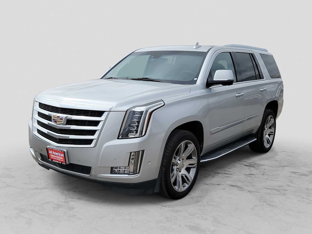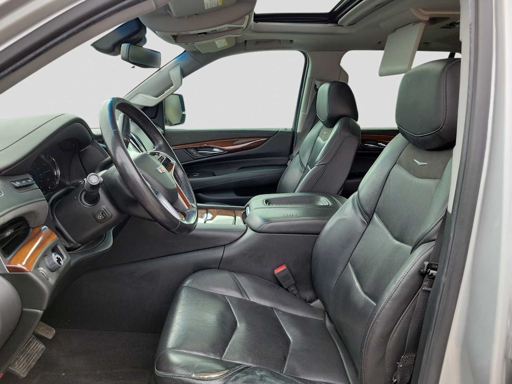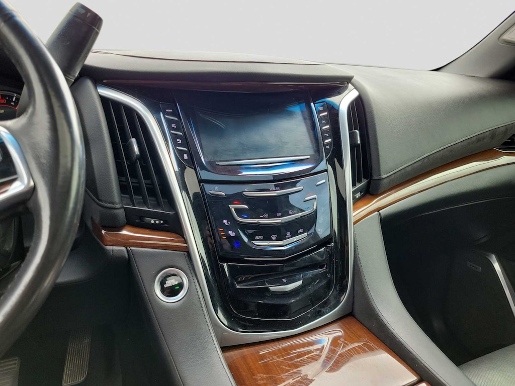 WHEELS, 22 X 9 (55.9 CM X 22.9 CM) DUAL 7-SPOKE ALLOY WITH ULTRA BRIGHT MACHINED/MIDNIGHT SILVER FINISH, LPO, ALL-WEATHER FLOOR LINER, 1ST AND 2ND ROWS bright finish badge, CADILLAC USER EXPERIENCE WITH EMBEDDED NAVIGATION AM/FM stereo with 8 diagonal color information display featuring touch response, haptic feedback, gesture recognition, Natural Voice Recognition, Phone Integration for Apple CarPlay® and Android Auto® capability for compatible phone, Connected Apps and Teen Driver. Five USB ports, including one in the articulating storage door/bin and auxiliary audio port (STD), ENGINE, 6.2L V8 WITH ACTIVE FUEL MANAGEMENT Spark Ignition Direct Injection (SIDI) and Variable Valve Timing (VVT), includes aluminum block construction (420 hp [313.2 kW] @ 5600 rpm, 460 lb-ft of torque [621 N-m] @ 4100 rpm) (STD), TRANSMISSION, 10-SPEED AUTOMATIC electronically controlled with overdrive, tow/haul mode and tap up/tap down shifting (STD). Cadillac Premium Luxury with Radiant Silver Metallic exterior and Jet Black interior features a 8 Cylinder Engine with 420 HP at 5600 RPM*.