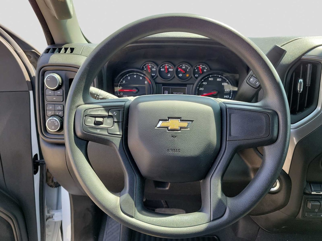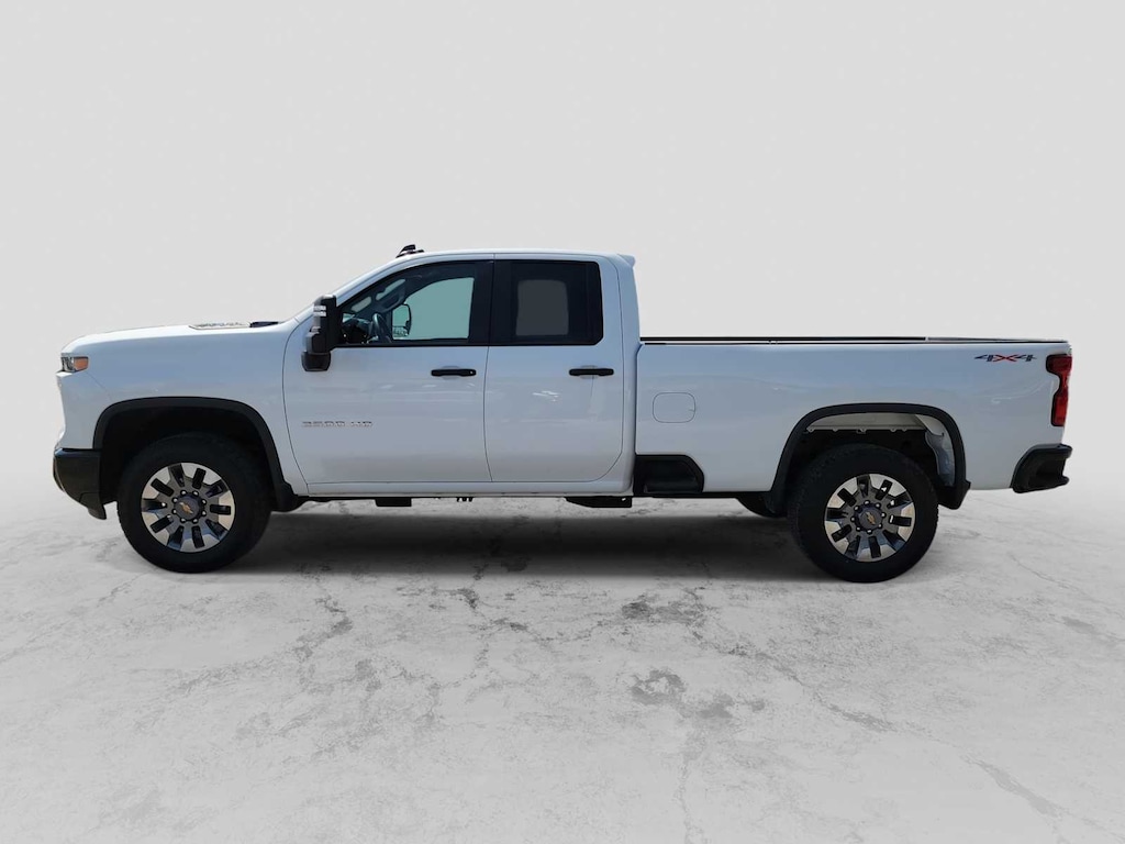 CUSTOM CONVENIENCE PACKAGE includes (BTV) Remote Start with (UTJ) content theft alarm, (KI4) 120-volt power outlet, (KC9) 120-volt bed-mounted power outlet, (UBI) 2 charge-only USB ports for second row, (C49) rear-window defogger, (A2X) 10-way power driver seat including power lumbar, (UF2) bed LED cargo area lighting, (QT5) EZ Lift power lock and release tailgate (Included with (PDX) Custom Value Package. Beginning with the start of production certain vehicles will be forced to include (RFO) Not Equipped with USB ports rear.), WT/CX SAFETY PACKAGE includes (UD5) Front and Rear Park Assist, (UKC) Lane Change Alert with Side Blind Zone Alert and (UFG) Rear Cross Traffic Alert, MIRRORS, OUTSIDE POWER-ADJUSTABLE VERTICAL TRAILERING WITH HEATED AND AUTO-DIMMING UPPER GLASS lower convex mirrors, turn signal indicators, puddle lamps, (U12) perimeter lighting, auxiliary lighting, power folding/manual extending (extends 3.31 [84.25mm]) Includes (DD8) auto-dimming rearview mirror. AUDIO SYSTEM, CHEVROLET INFOTAINMENT 3 SYSTEM 7 diagonal HD color touchscreen, AM/FM stereo, Bluetooth® audio streaming for 2 active devices, voice command pass-through to phone, Wireless Apple CarPlay® and Wireless Android Auto® compatibility (STD), ENGINE, 6.6L V8 with Direct Injection and Variable Valve Timing, gasoline, (401 hp [299 kW] @ 5200 rpm, 464 lb-ft of torque [629 N-m] @ 4000 rpm) (STD), TRANSMISSION, ALLISON 10-SPEED AUTOMATIC (STD). Chevrolet Custom with Summit White exterior and Jet Black interior features a 8 Cylinder Engine with 401 HP at 5200 RPM*.