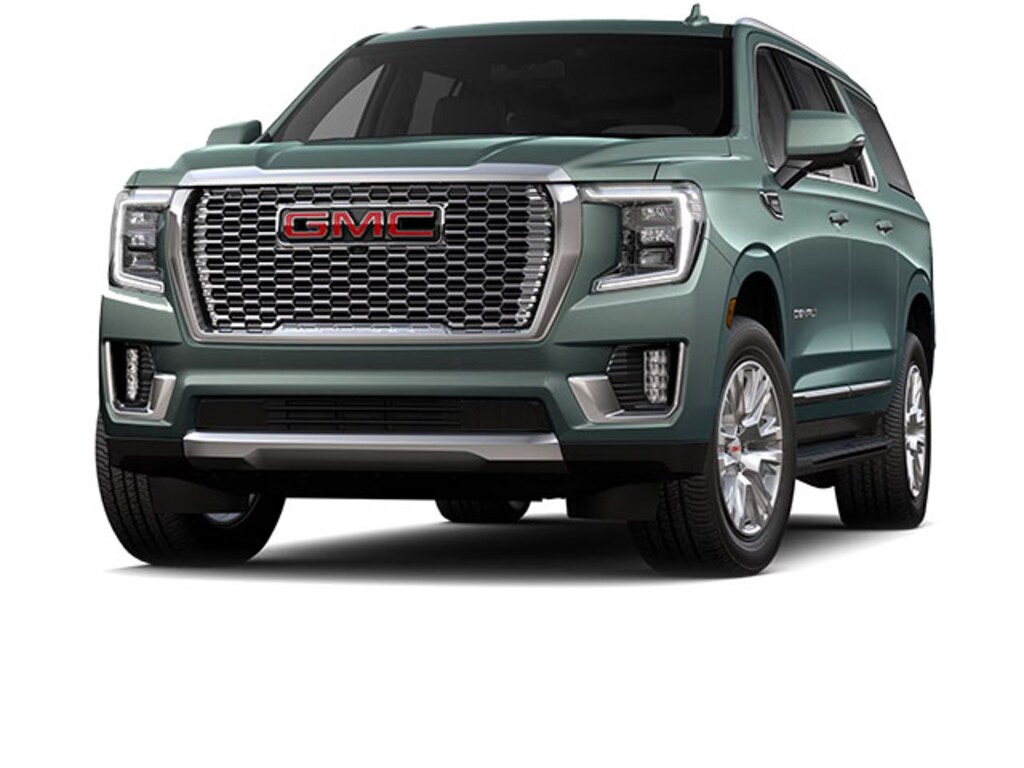 WHEELS, 22 X 9 (55.9 CM X 22.9 CM) BRIGHT MACHINED ALUMINUM WITH PREMIUM PAINT Includes (SFE) wheel locks, LPO. REAR SEAT MEDIA SYSTEM includes dual rear seat-mounted 12.6 diagonal color-touch LCD HD screens, Wi-Fi wireless projection capability, two Bluetooth® headphones with 2 HDMI ports on the back of the center console, ASSIST STEPS, POWER-RETRACTABLE WITH PERIMETER LIGHTING, SUNROOF, POWER PANORAMIC, DUAL-PANE tilt-sliding with express-open and close and power sunshade, ADAPTIVE CRUISE CONTROL (Beginning with start of production through October 2, 2022, vehicles will be forced to include (07Z) Not Equipped with Adaptive Cruise Control and Enhanced Automatic Emergency Braking, which removes Adaptive Cruise Control and Enhanced Automatic Emergency Braking. Vehicles will instead include Electronic Cruise Control and Automatic Emergency Braking. See dealer for details or the window label for the features on a specific vehicle.), AUDIO SYSTEM, 10.2 DIAGONAL PREMIUM GMC INFOTAINMENT SYSTEM WITH GOOGLE BUILT-IN includes color touch-screen, multi-touch display, AM/FM stereo, Bluetooth® streaming audio for music and most phones; featuring wireless Android Auto® and Apple CarPlay® capability for compatible phones, advanced voice recognition, in-vehicle apps, personalized profiles for infotainment and vehicle settings (STD), ENGINE, 6.2L ECOTEC3 V8 with Dynamic Fuel Management, Direct Injection and Variable Valve Timing, includes aluminum block construction (420 hp [313 kW] @ 5600 rpm, 460 lb-ft of torque [624 Nm] @ 4100 rpm) (STD), TRANSMISSION, 10-SPEED AUTOMATIC electronically controlled with overdrive, includes Traction Select System including tow/haul (STD). GMC Denali with Frosted Pine Metallic exterior and Teak/Light Shale interior features a 8 Cylinder Engine with 420 HP at 5600 RPM*.