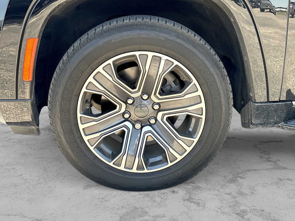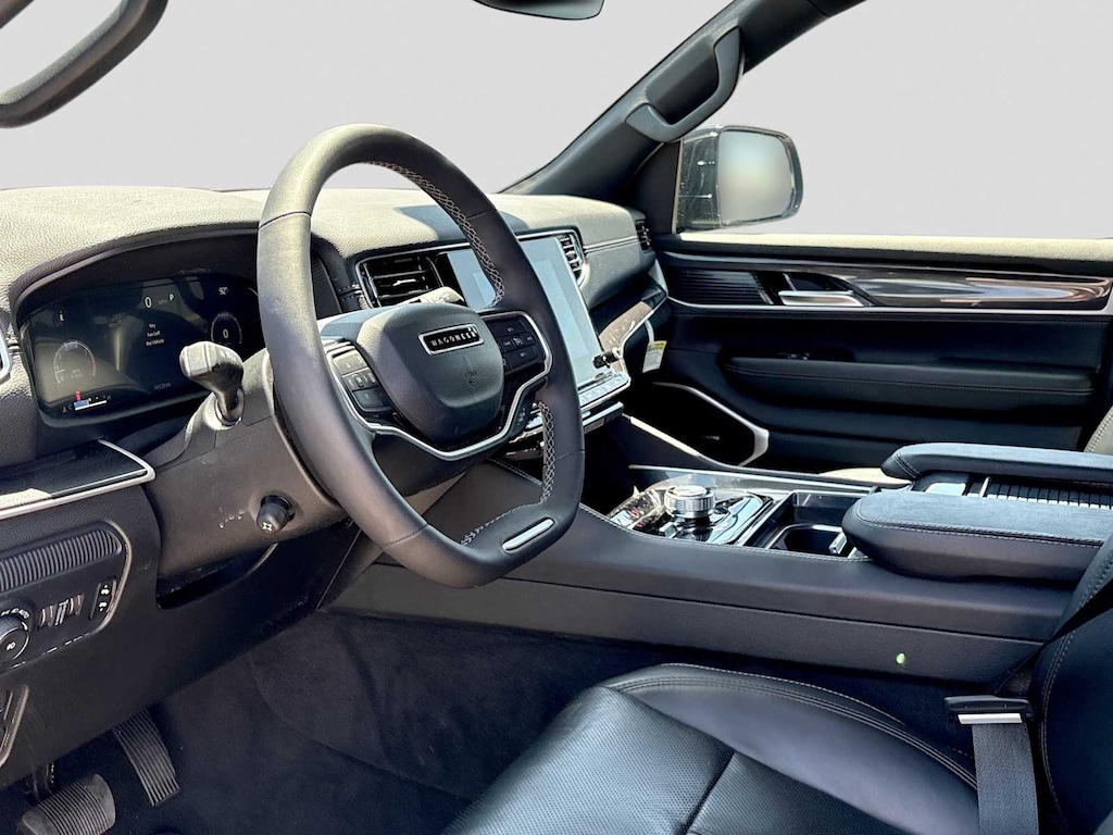PREMIUM GROUP I Wheels: 20 x 9.0 Premium 2 Aluminum, Reversible Carpet/Vinyl Cargo Mat, Cargo Cover, Tires: 275/55R20 BSW All Season, 3 Panel Sunroof, Adjustable Roof Rail Crossbars, CONVENIENCE GROUP I Active Lane Management System, Side Distance Warning, Adaptive Cruise Control w/Stop & Go, Auto High Beam Headlamp Control, Surround View Camera System, 2nd Row Manual Window Shades, Rain Sensitive Windshield Wipers, Heated Second Row Seats, P&P Park & Unpark Assist w/Stop System, TRANSMISSION: 8-SPEED AUTOMATIC (8HP75) (STD), ENGINE: 3.0L I6 HURRICANE SO TWIN TURBO ESS (STD). Jeep Wagoneer with Diamond Black Crystal Pearlcoat exterior and Global Black interior features a Straight 6 Cylinder Engine with 420 HP at 5200 RPM*.