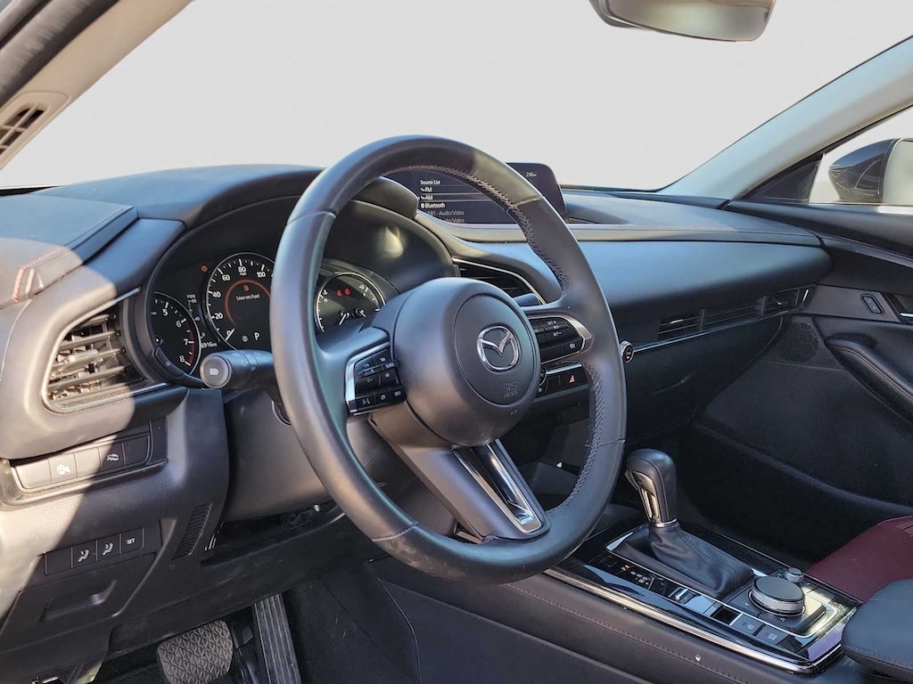 Leather Seats, Sunroof, All Wheel Drive, Heated Driver Seat, Back-Up Camera, iPod/MP3 Input, Onboard Communications System, Aluminum Wheels, Keyless Start, Dual Zone A/C, Blind Spot Monitor, Lane Keeping Assist, Brake Actuated Limited Slip Differential, WiFi Hotspot, Apple CarPlay® Rear Spoiler, MP3 Player, Keyless Entry, Privacy Glass, Child Safety Locks. Mazda CX-30 2.5 S Carbon Edition with Polymetal Gray Metallic exterior and Red interior features a 4 Cylinder Engine with 191 HP at 6000 RPM*.