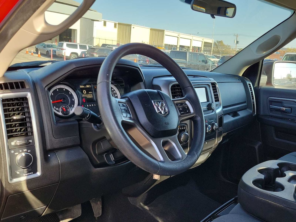 TRANSMISSION: 8-SPEED AUTOMATIC (850RE) (STD), ENGINE: 3.6L V6 24V VVT (STD). Ram SLT with Flame Red Clearcoat exterior and Diesel Gray/Black interior features a V6 Cylinder Engine with 305 HP at 6400 RPM*.