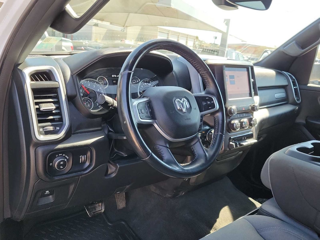 ENGINE: 5.7L V8 HEMI MDS VVT ETORQUE Active Noise Control System, Heavy Duty Engine Cooling, Passive Tuned Mass Damper, Dual Rear Exhaust w/Bright Tips, HEMI Badge, 23 Gallon Fuel Tank, 18 Aluminum Spare Wheel, BIG HORN LEVEL 1 EQUIPMENT GROUP Google Android Auto®, Bluetooth® Handsfree Phone & Audio, USB Host Flip, Rear Window Defroster, Integrated Center Stack Radio, Rear View Auto Dim Mirror, For More Info, Call 800-643-2112, Rear Power Sliding Window, Rear Dome w/On/Off Switch Lamp, Front Fog Lamps, Connectivity - US/Canada, Glove Box Lamp, 4G LTE Wi-Fi Hot Spot, Auto Dim Exterior Driver Mirror, Heated Front Seats, Radio: Uconnect 5 W w/8.4 Display, Heated Steering Wheel, 8.4 Touchscreen Display, Class IV Receiver Hitch, Black Premium Power Mirrors, Apple CarPlay®, Big Horn IP Badge, SiriusXM Satellite Radio, Exterior Mirrors w/Supplemental Signals, Exterior Mirrors Courtesy Lamps, Passenger Sun Visor w/Illuminated Mirror, Electric Shift On Demand Transfer Case, Power-Folding Mirrors, 2nd Row, OFF ROAD GROUP Off Road Decals, Steering Gear Skid Plate, Front Suspension Skid Plate, Raised Ride Height, Front Extra HD Shock Absorbers, Rear Extra HD Shock Absorbers, Full Size Spare Tire, Tow Hooks, E-Locker Rear Axle, Transfer Case Skid Plate, Fuel Tank Skid Plate, Selec-Speed (TM) Control, REMOTE START SYSTEM, TRANSMISSION: 8-SPEED AUTOMATIC (8HP75). Ram Big Horn with Bright White Clearcoat exterior and Diesel Gray/Black interior features a 8 Cylinder Engine with 395 HP at 5600 RPM*.