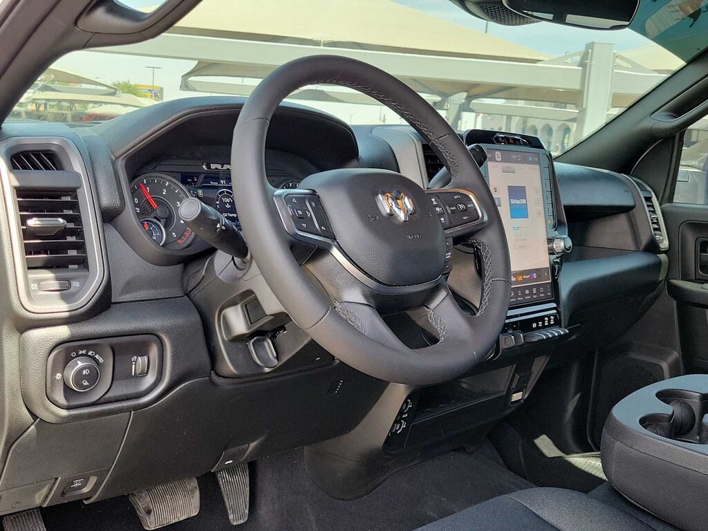 ENGINE: 6.7L I6 CUMMINS HO TURBO DIESEL Selective Catalytic Reduction (Urea), Dual 730 Amp Maintenance Free Batteries, Cummins Turbo Diesel Badge, Heavy Duty Engine Cooling, Current Generation Engine Controller, Diesel Exhaust Brake, Supplemental Heater, 3.42 Axle Ratio, Front Bumper Sight Shields, Capless Fuel Fill w/o Discriminator, GVWR: 12,300 lb, TRADESMAN LEVEL 2 EQUIPMENT GROUP Convenience Group, For Details Visit DriveUconnect.com, For More Info, Call 800-643-2112, Emergency Vehicle Alert System (EVAS), 12 Touchscreen Display, Mirror Running Lights, Exterior 115V AC Outlet, Alexa Built-In, Power-Adjustable Convex Aux Mirrors, Disassociated Touchscreen Display, Matte Black Mesh w/Chrome Grille, 115V Auxiliary Front Power Outlet, Rear View Auto Dim Mirror, Rear Power Sliding Window, Tinted Acoustic Windshield Glass, GPS Navigation, Bright Rear Bumper, Exterior Mirrors w/Heating Element, MOPAR Black Tubular Side Steps, Chrome Grille Surround, SiriusXM w/360L, Connected Travel & Traffic Services, Carpet Floor Covering, Off-Road Information Pages, Trailer Tow Pages, 400W Inverter, HD Radio, Power Heat Fold Telescopic Mirrors, Radio: SAFETY GROUP Active Lane Management System, Auto High Beam Headlamp Control, Blind Spot & Cross Path Detection, LED Tail Lamps, Red Tail Lamp Bezels, Cluster 7.0 TFT Color Display, Rain Sensitive Windshield Wipers, Rear View Auto Dim Mirror, Drowsy Driver Detection, Steering Wheel Mounted Audio Controls, Luxury Steering Wheel, Adaptive Steering System, DUAL REAR WHEELS Clearance Lamps, Tires: LT235/80R17E BSW All Season, 17 Steel Spare Wheel, Box & Rear Fender Clearance Lamps, 6000# Front Axle w/Hub Ext, GVWR: 14,000 lb, Rear Wheelhouse Liners, TRANSMISSION: 8-SPEED TORQUEFLITE HD AUTOMATIC, BLACK, CLOTH 40/20/40 BENCH SEAT. Ram Tradesman with Bright White Clearcoat exterior and Black interior features a Straight 6 Cylinder Engine with 430 HP at 2800 RPM*.