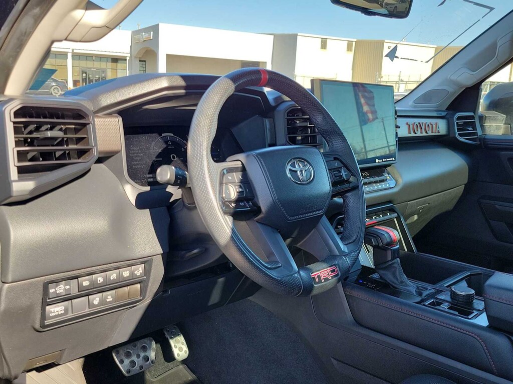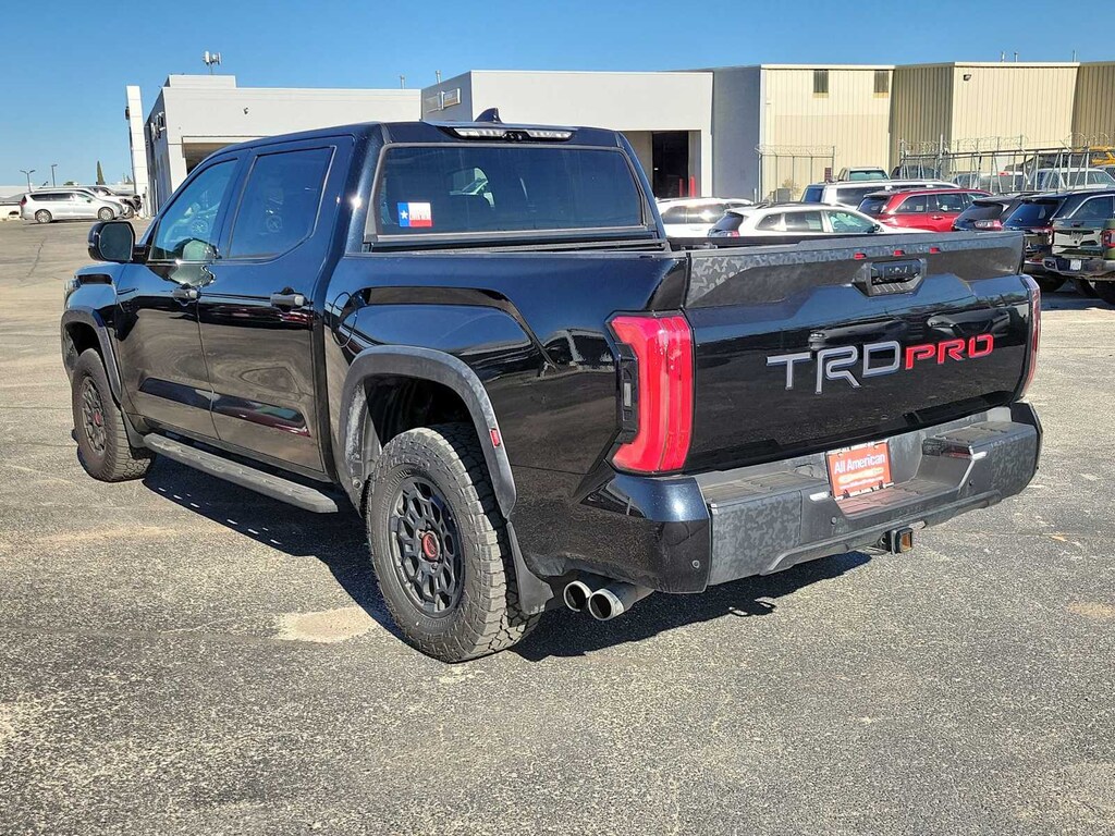 TRD CAST ALUMINUM RUNNING BOARD (TMS), SPRAY-ON BED LINER (TMS), TRD PRO PACKAGE Without front spoiler, Panoramic View Back Monitor. Toyota TRD Pro Hybrid with Midnight Black Metallic exterior and BLACK interior features a V6 Cylinder Engine with 437 HP at 5200 RPM*.